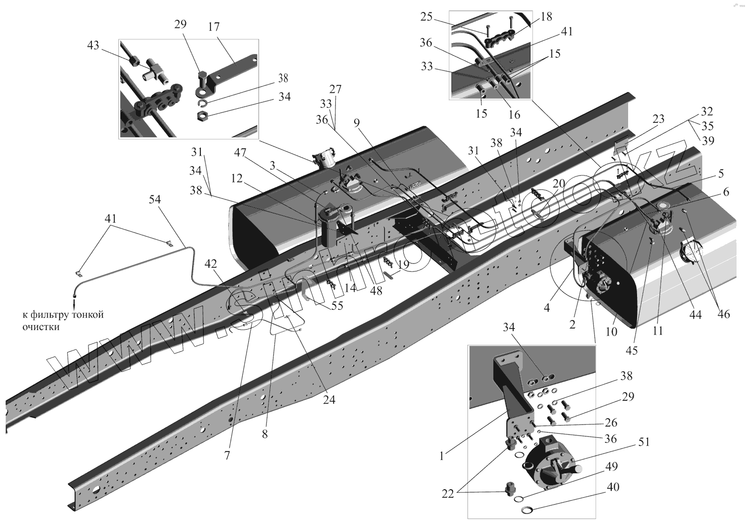 Каталог запасных частей к технике: МАЗ-631705. Установка топливопроводов 631705-1104002-060