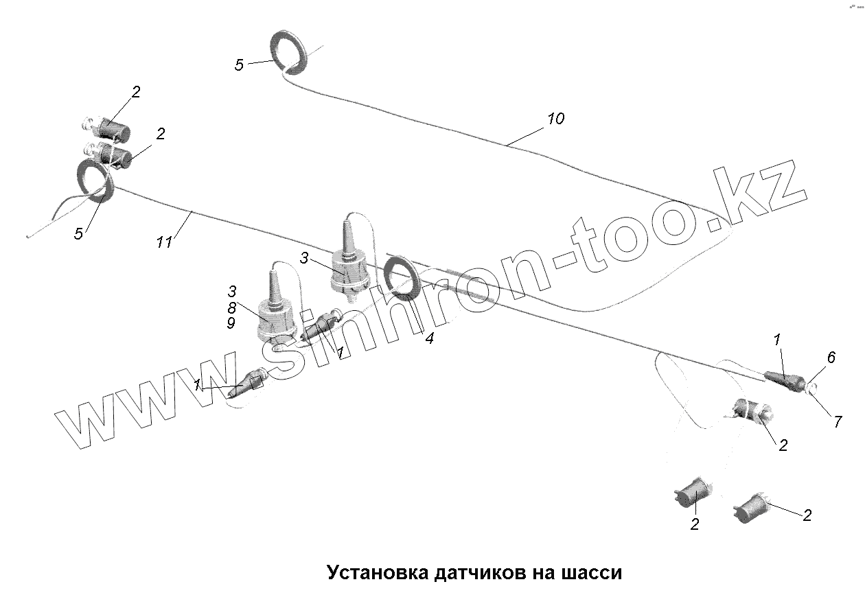 Каталог запасных частей к технике: МАЗ-631705, 631708. Электрооборудование\Установка датчиков на шасси
