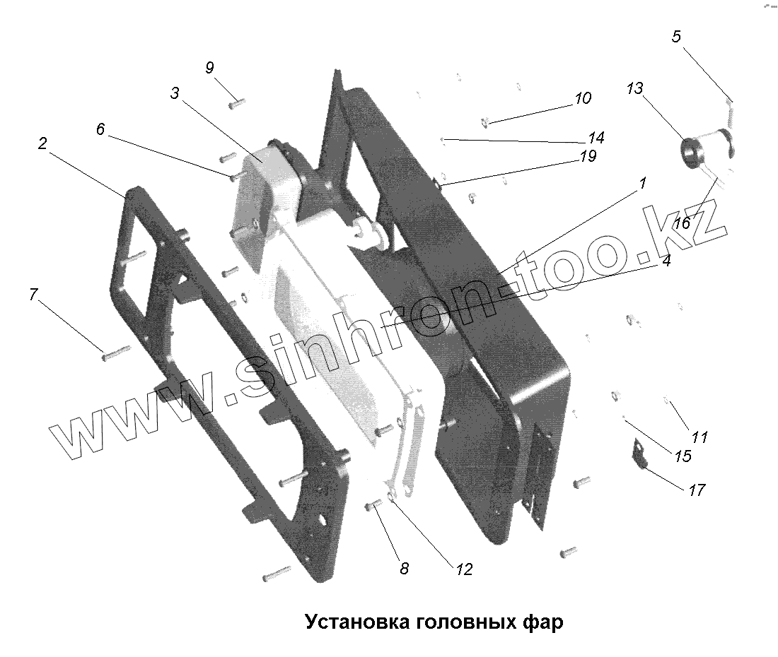 Каталог запасных частей к технике: МАЗ-631705, 631708. Электрооборудование\Установка головных фар
