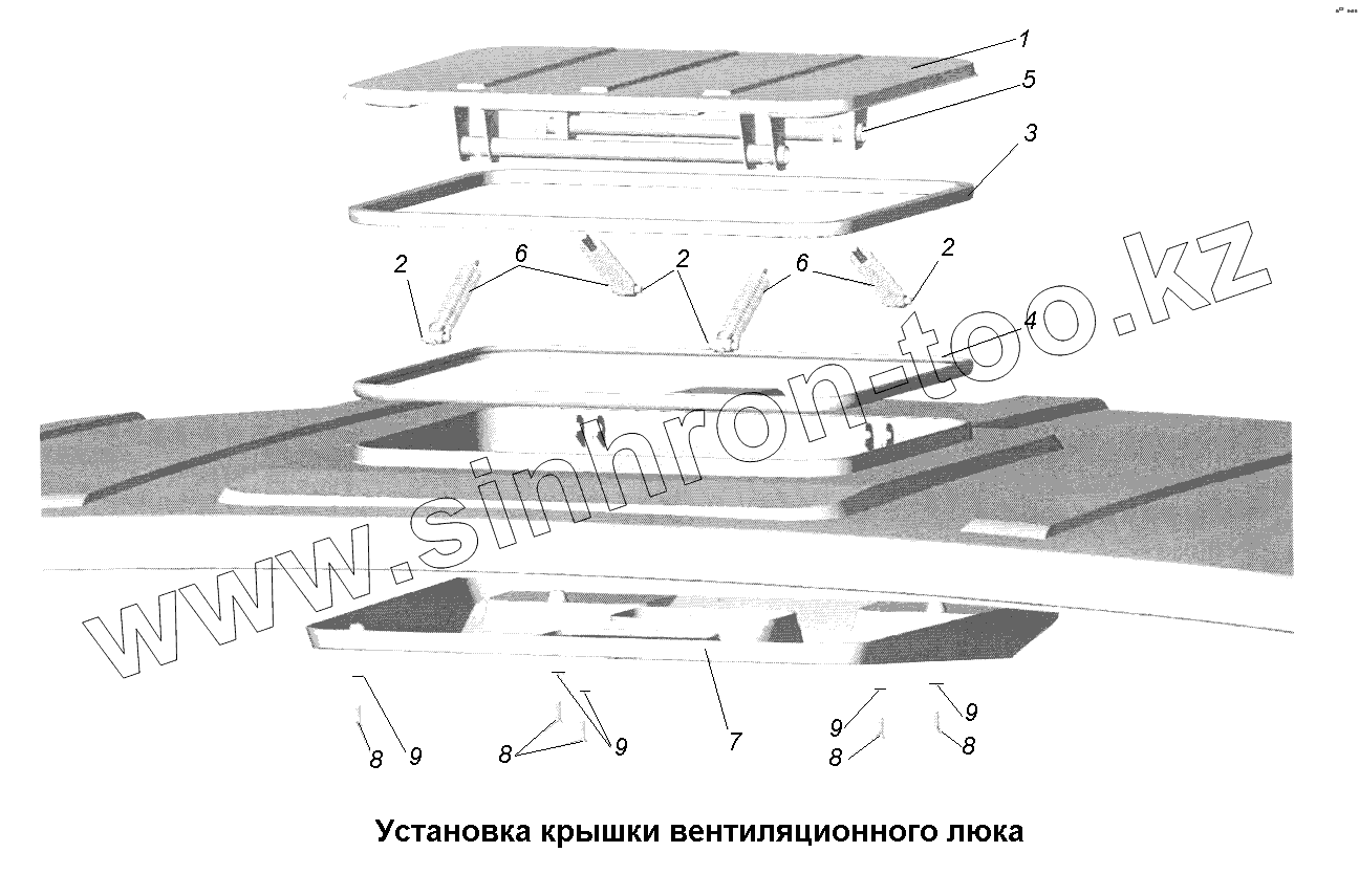 Каталог запасных частей к технике: МАЗ-631705, 631708. Кабина\Установка крышки вентиляционного люка