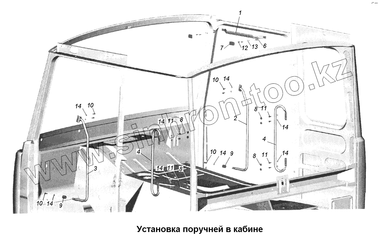 Каталог запасных частей к технике: МАЗ-631705, 631708. Кабина\Установка поручней в кабине