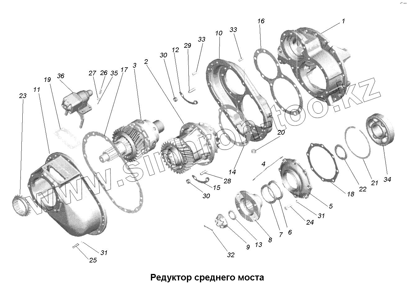 Каталог запасных частей к технике: МАЗ-631705, 631708. Мост средний\Редуктор среднего моста
