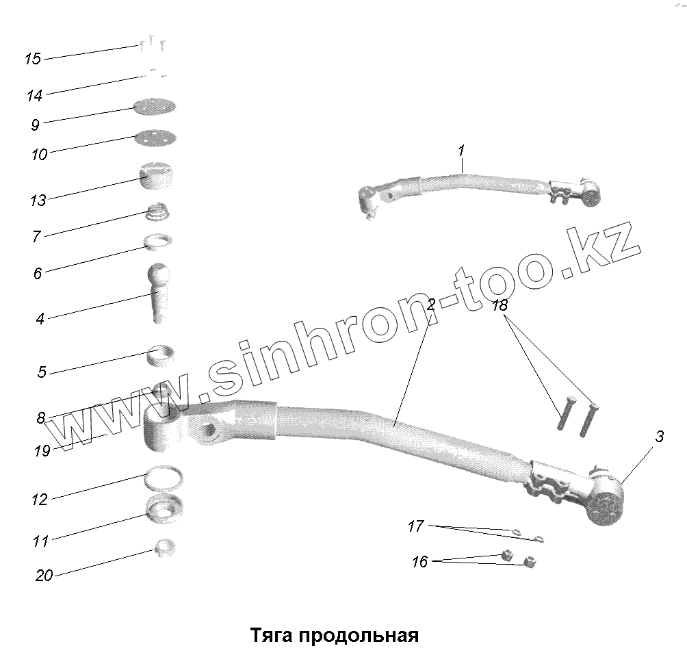 Каталог запасных частей к технике: МАЗ-631705, 631708. Рулевые тяги\Тяга продольная