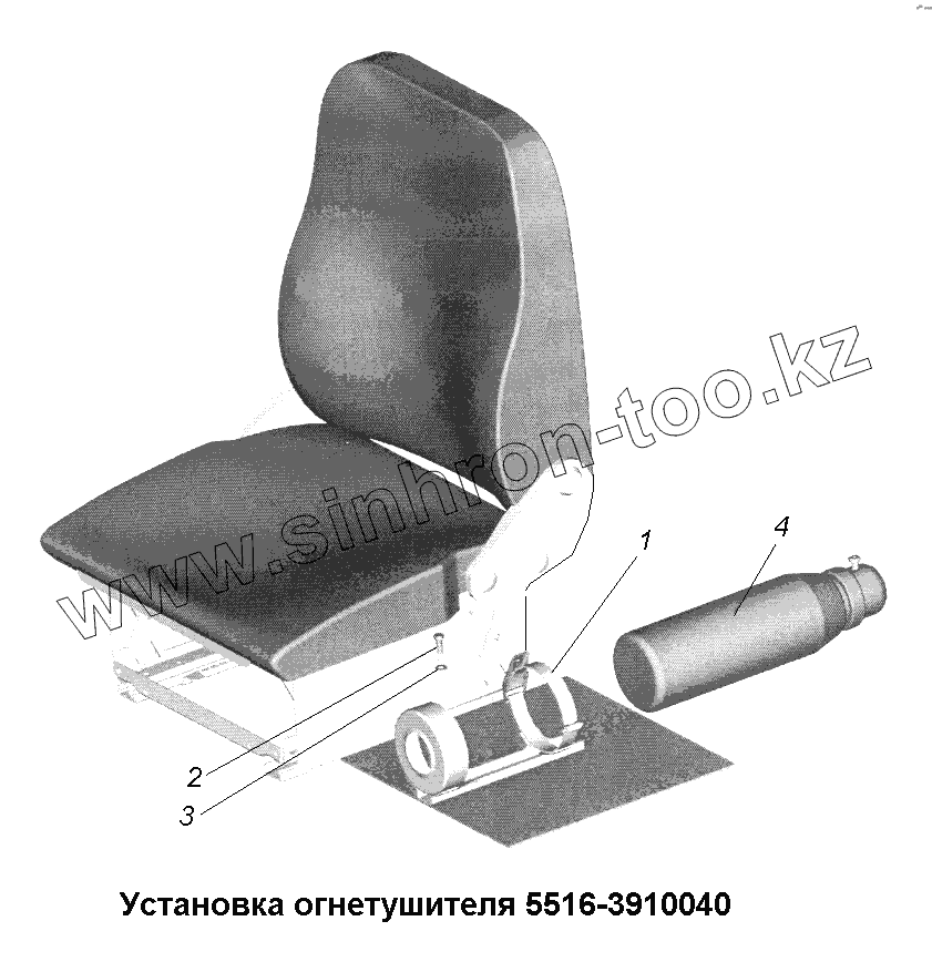 Каталог запасных частей к технике: МАЗ-631705, 631708. Установка принадлежностей\Установка огнетушителя 5516-3910040
