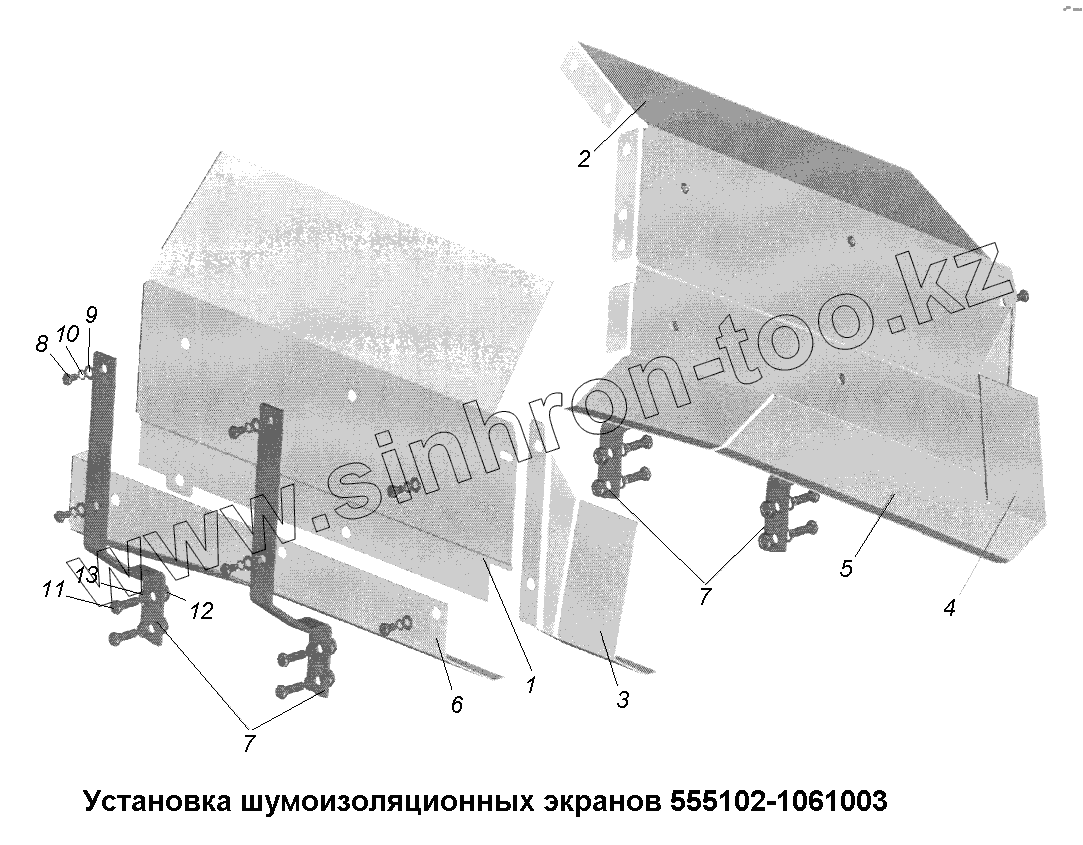 Каталог запасных частей к технике: МАЗ-631705, 631708. Установка шумоизоляционных экранов 555102-1061003