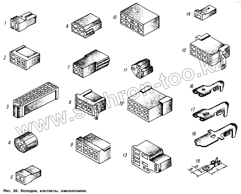 Каталог запасных частей к технике: МАЗ-6317. Колодки, контакты, наконечники