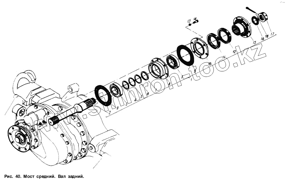 Каталог запасных частей к технике: МАЗ-6317. Мост средний. Вал задний