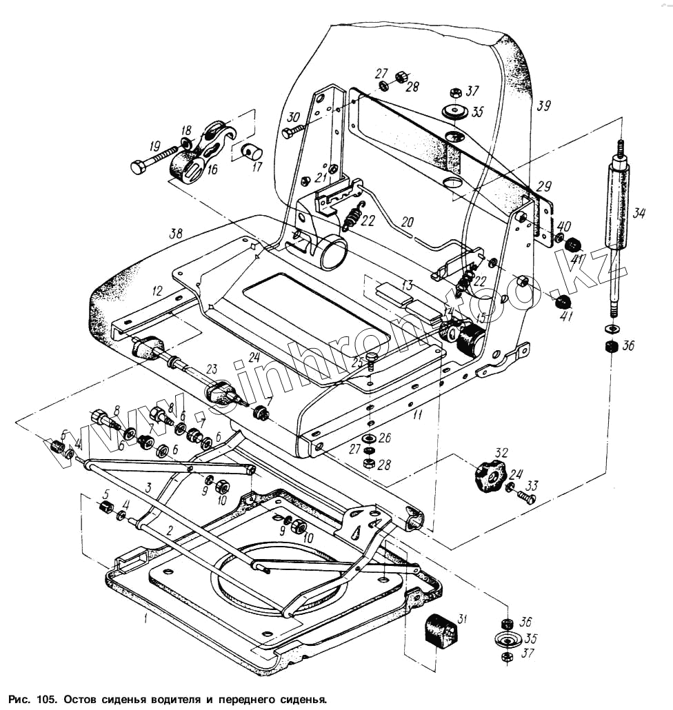 Каталог запасных частей к технике: МАЗ-6317. Остов сиденья водителя и переднего сиденья