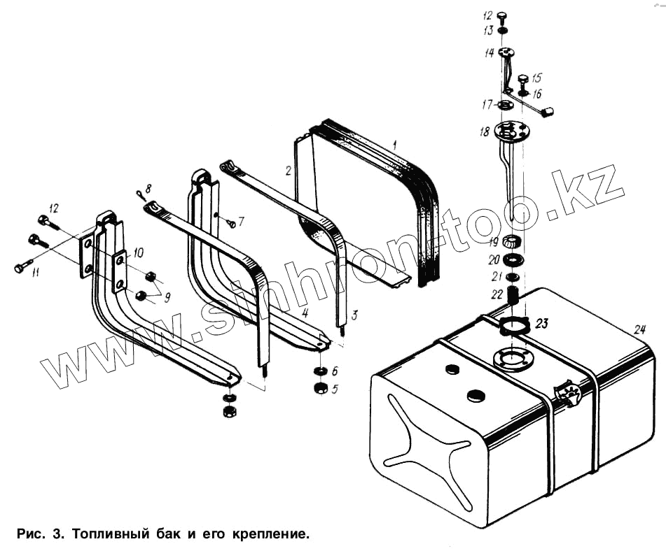 Каталог запасных частей к технике: МАЗ-6317. Топливный бак и его крепление