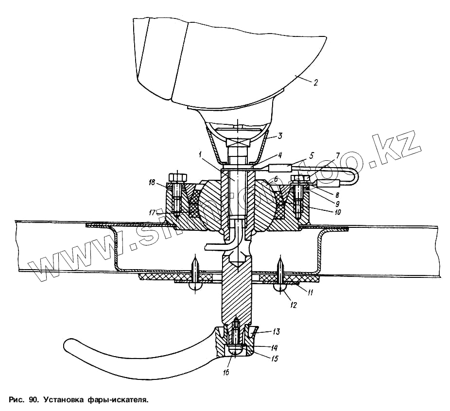 Каталог запасных частей к технике: МАЗ-6317. Установка фары-искателя