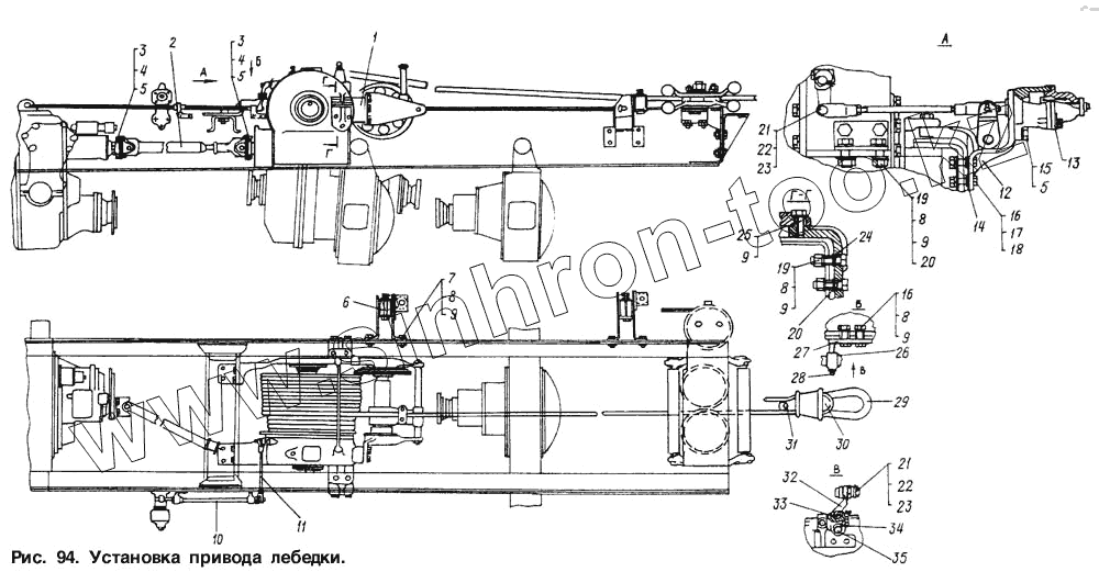 Каталог запасных частей к технике: МАЗ-6317. Установка привода лебедки