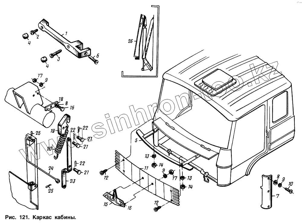 Каталог запасных частей к технике: МАЗ-64221. Каркас кабины