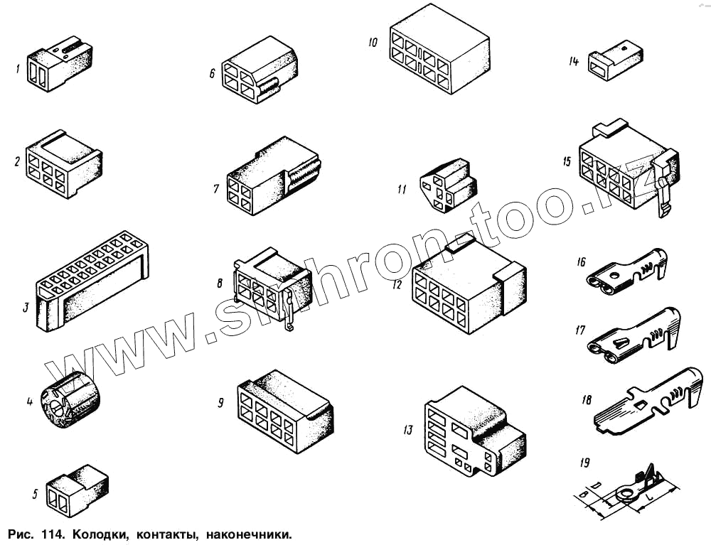 Каталог запасных частей к технике: МАЗ-64221. Колодки, контакты, наконечники