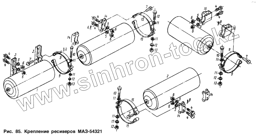 Каталог запасных частей к технике: МАЗ-64221. Крепление ресиверов МАЗ-54321