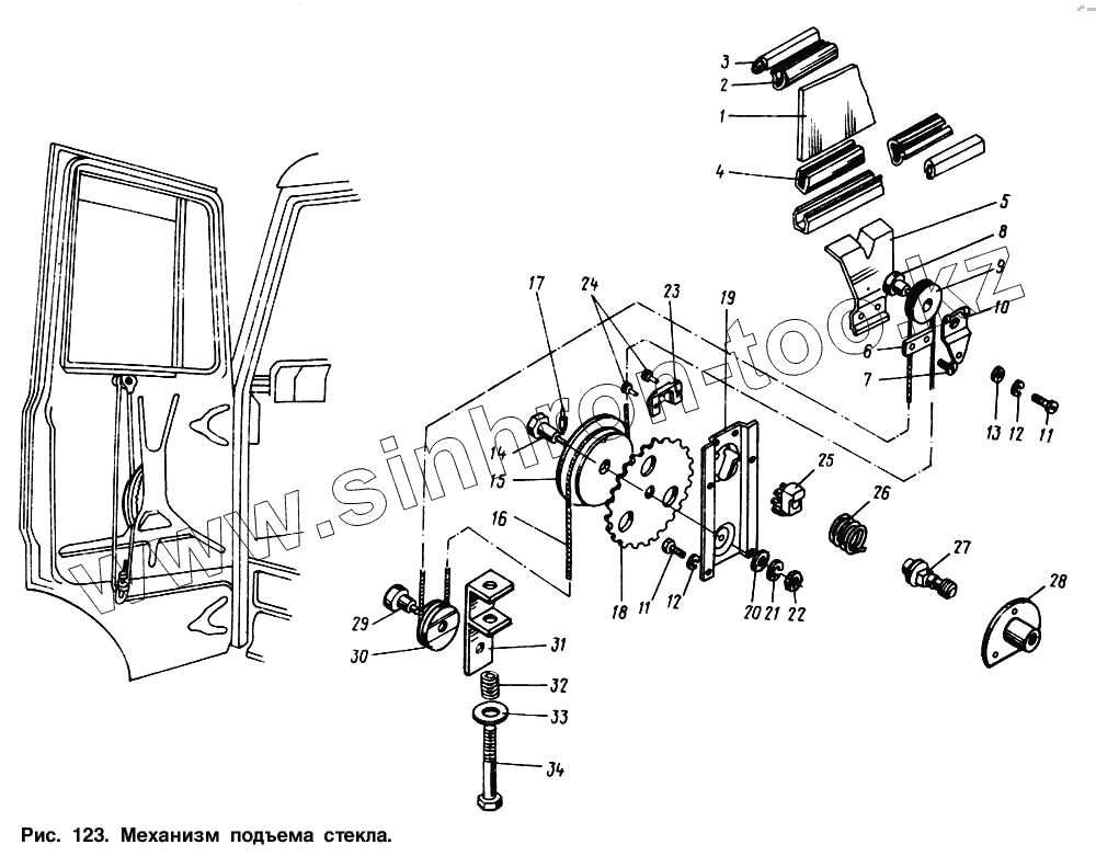 Каталог запасных частей к технике: МАЗ-64221. Механизм подъема стекла
