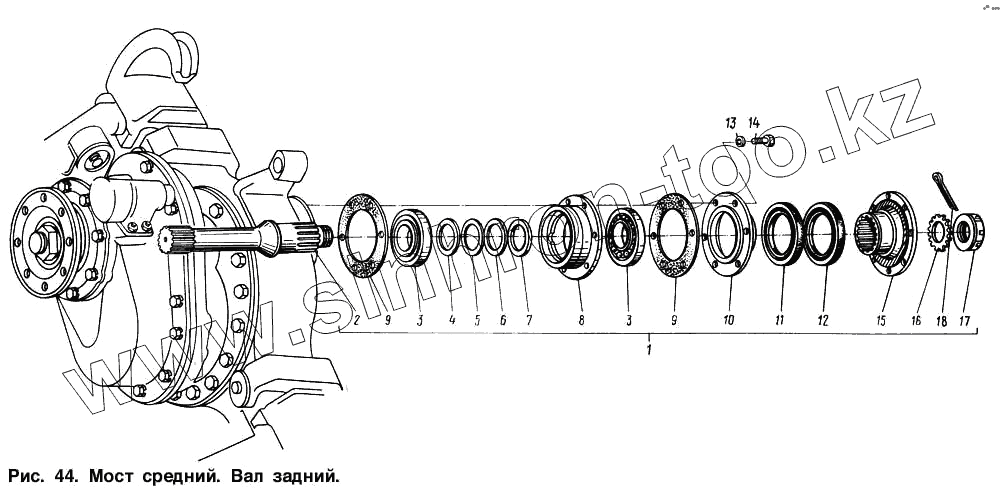 Каталог запасных частей к технике: МАЗ-64221. Мост средний. Вал задний