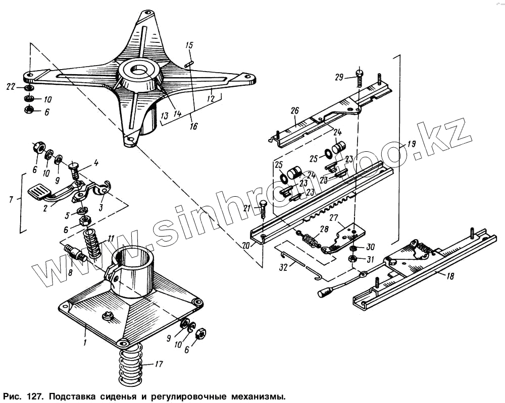 Каталог запасных частей к технике: МАЗ-64221. Подставка сиденья и регулировочные механизмы