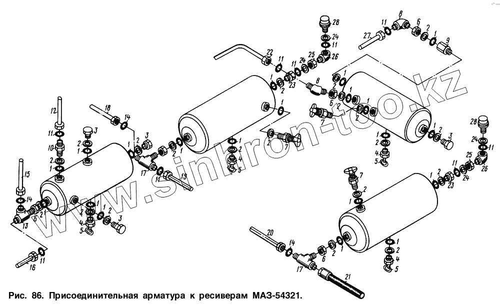 Каталог запасных частей к технике: МАЗ-64221. Присоединительная арматура к ресиверам МАЗ-54321