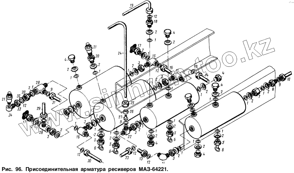 Каталог запасных частей к технике: МАЗ-64221. Присоединительная арматура ресиверов МАЗ-64221