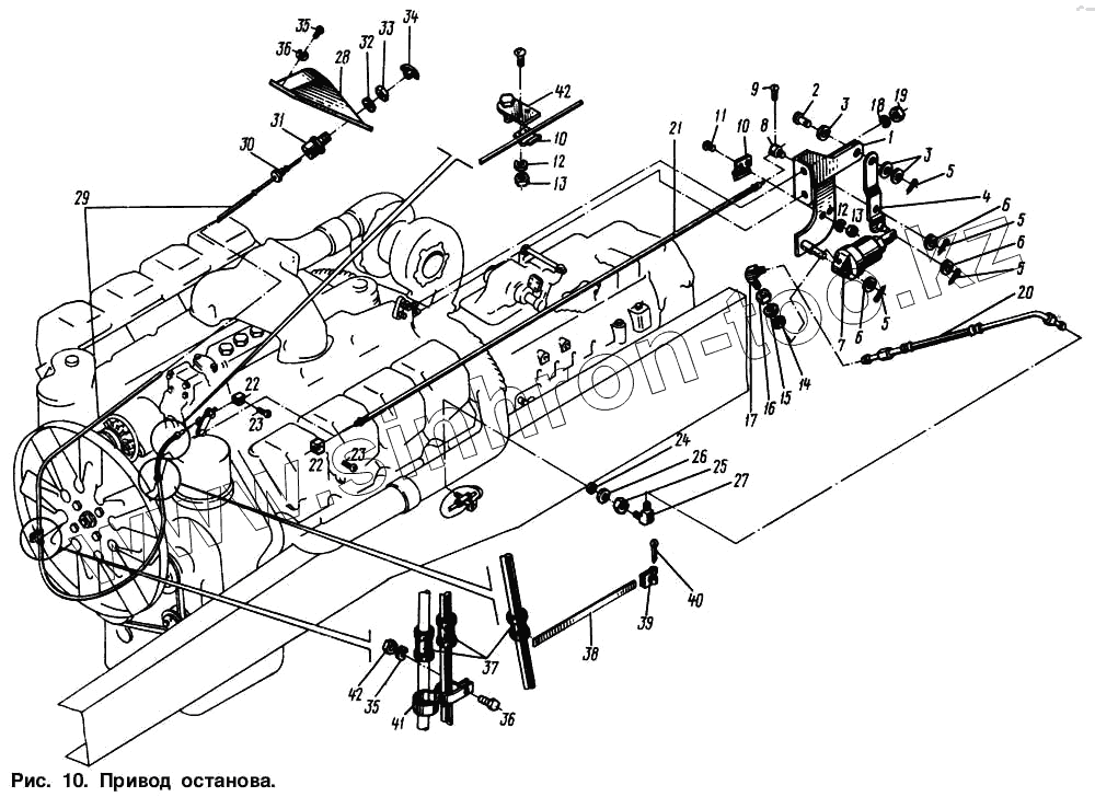 Каталог запасных частей к технике: МАЗ-64221. Привод останова. Привод выключения двигателя противоугонным устройством