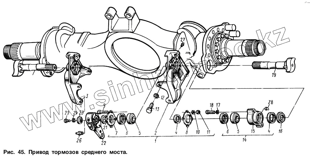 Каталог запасных частей к технике: МАЗ-64221. Привод тормозов среднего моста