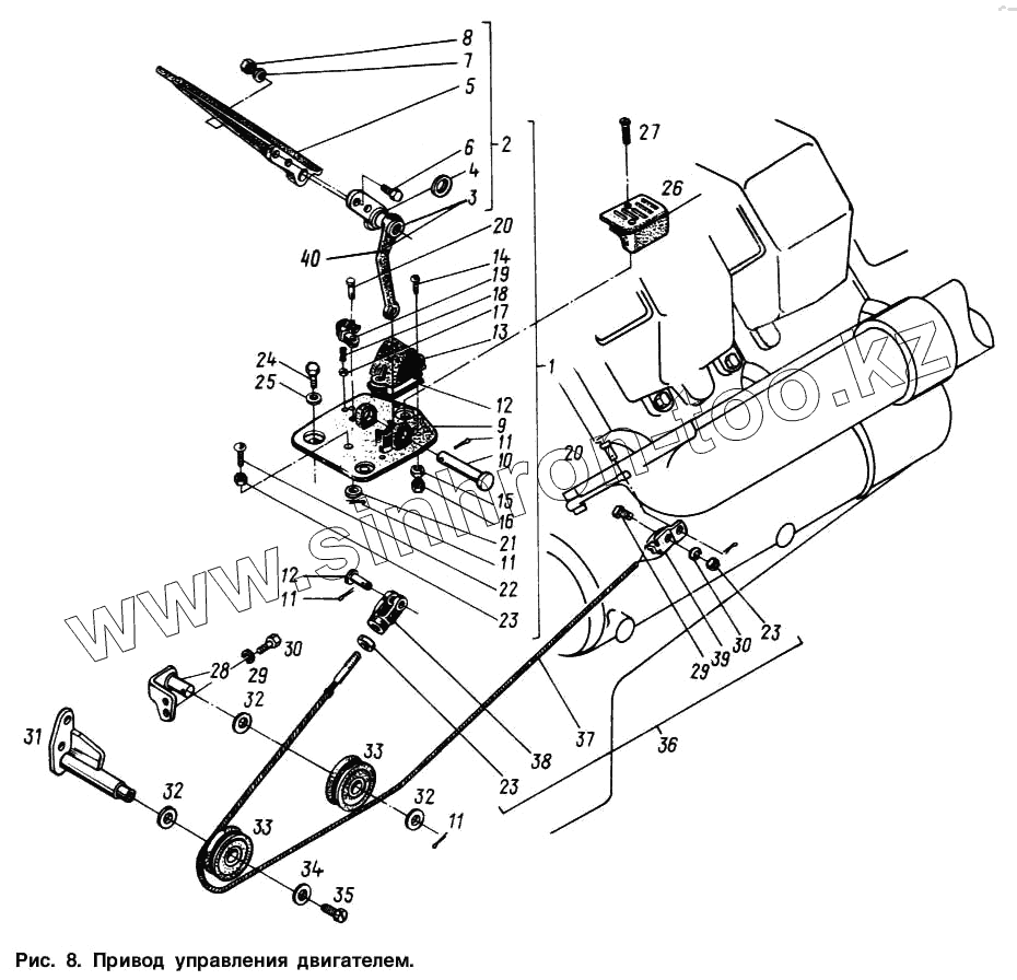 Каталог запасных частей к технике: МАЗ-64221. Привод управления двигателем