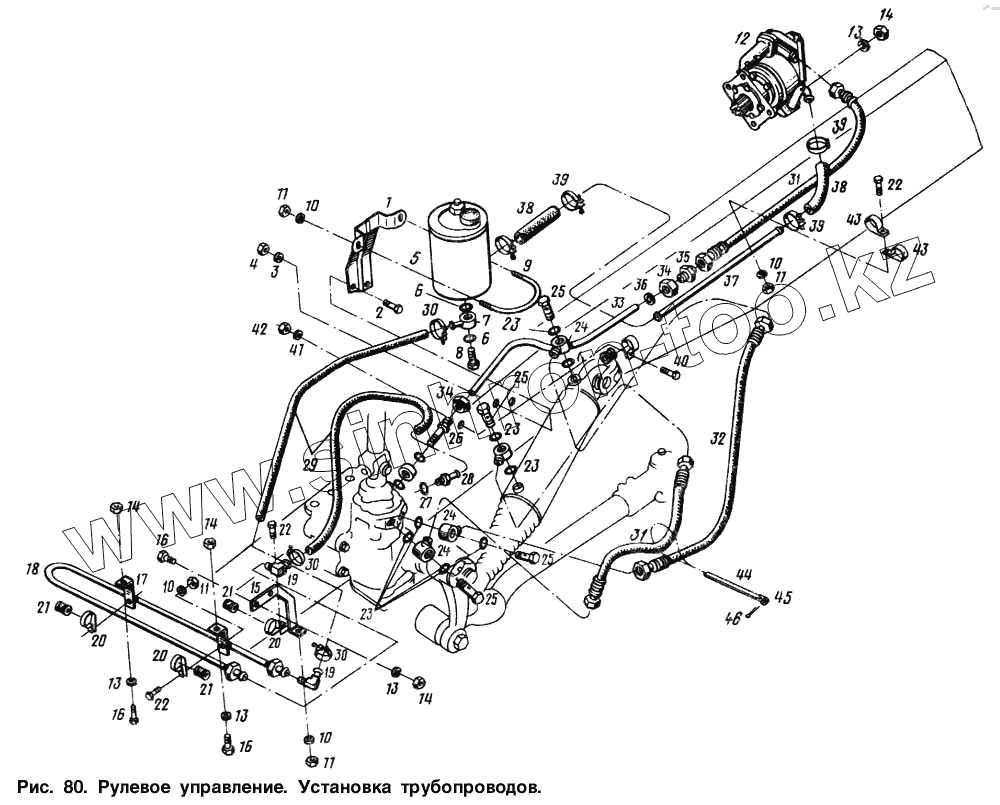 Каталог запасных частей к технике: МАЗ-64221. Рулевое управление. Установка трубопроводов