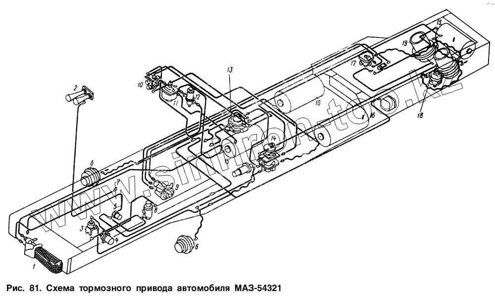 Каталог запасных частей к технике: МАЗ-64221. Схема тормозного привода автомобиля МАЗ-54321