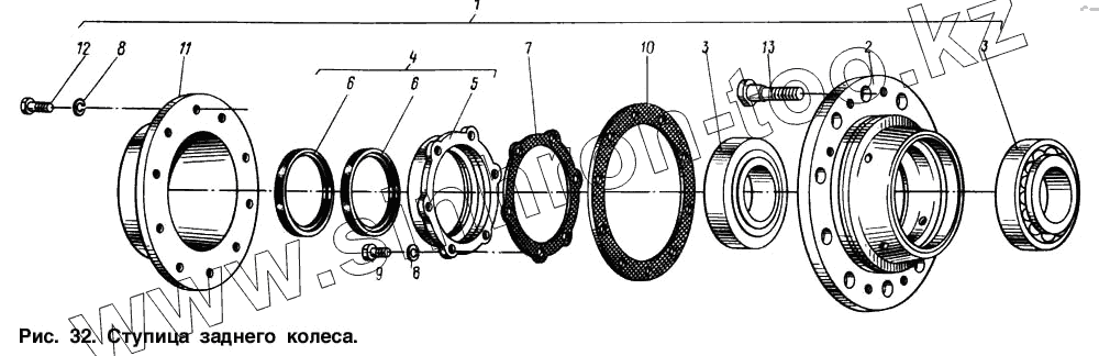 Каталог запасных частей к технике: МАЗ-64221. Ступица заднего колеса