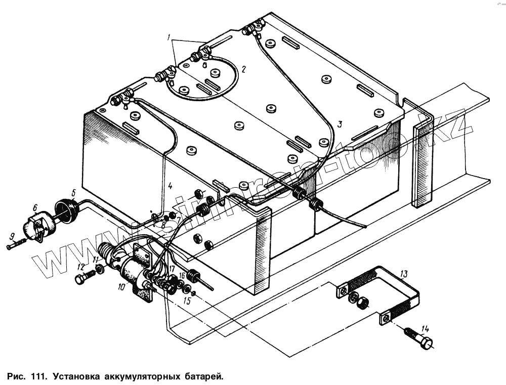 Каталог запасных частей к технике: МАЗ-64221. Установка аккумуляторных батарей