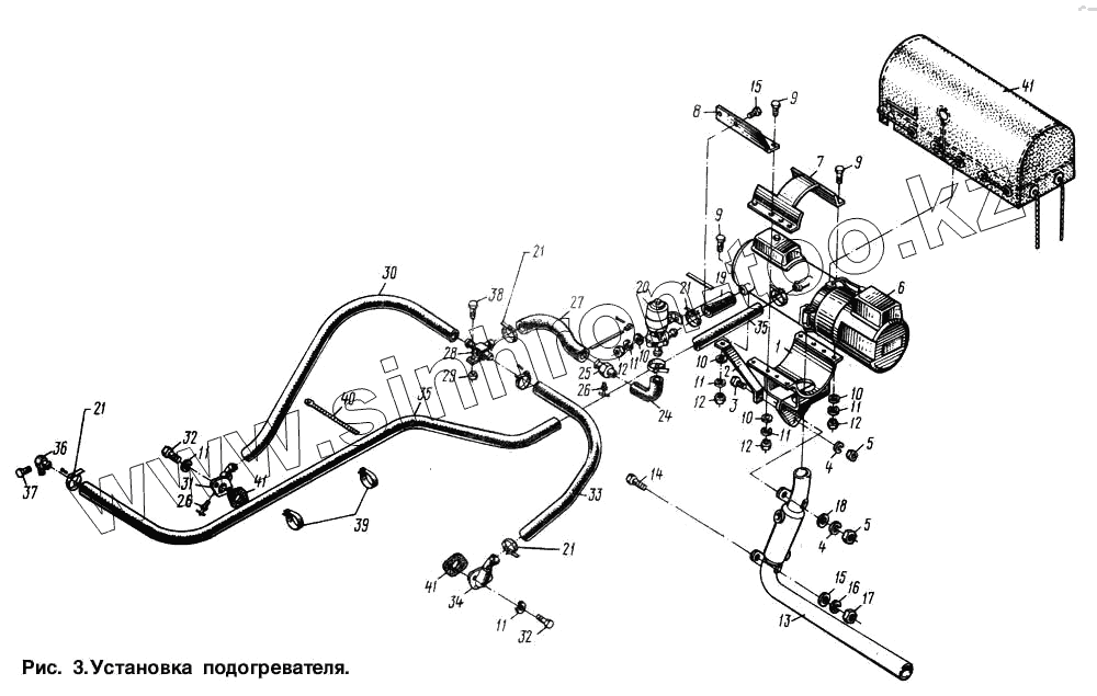 Каталог запасных частей к технике: МАЗ-64221. Установка подогревателя