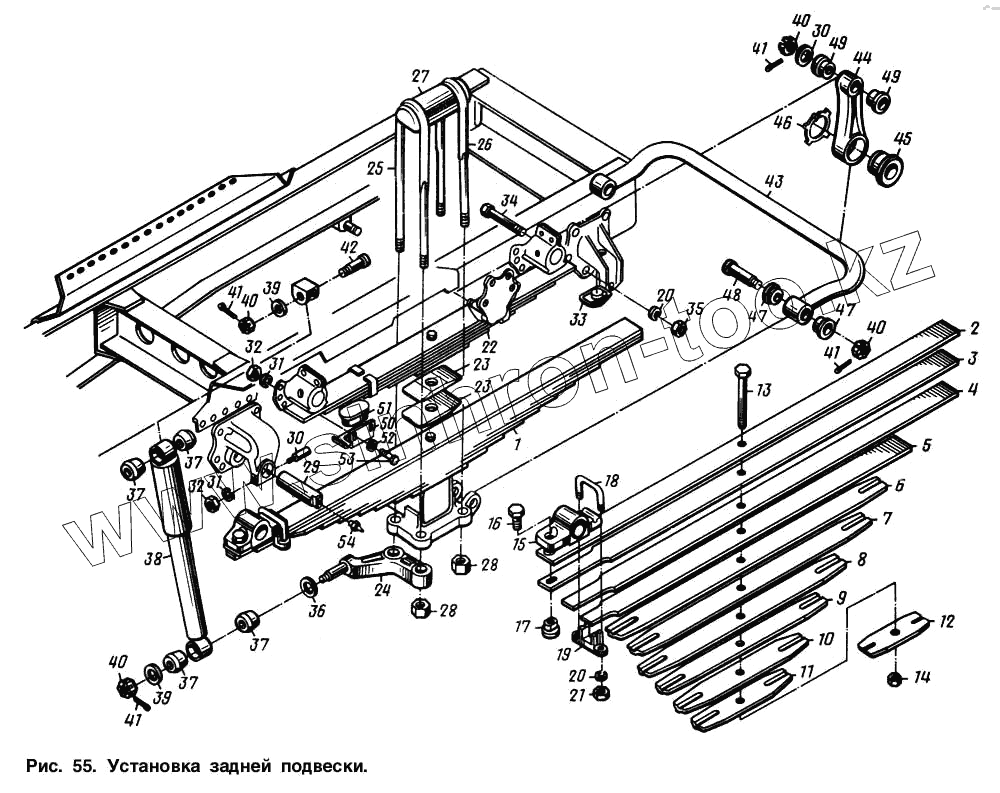 Каталог запасных частей к технике: МАЗ-64221. Установка задней подвески