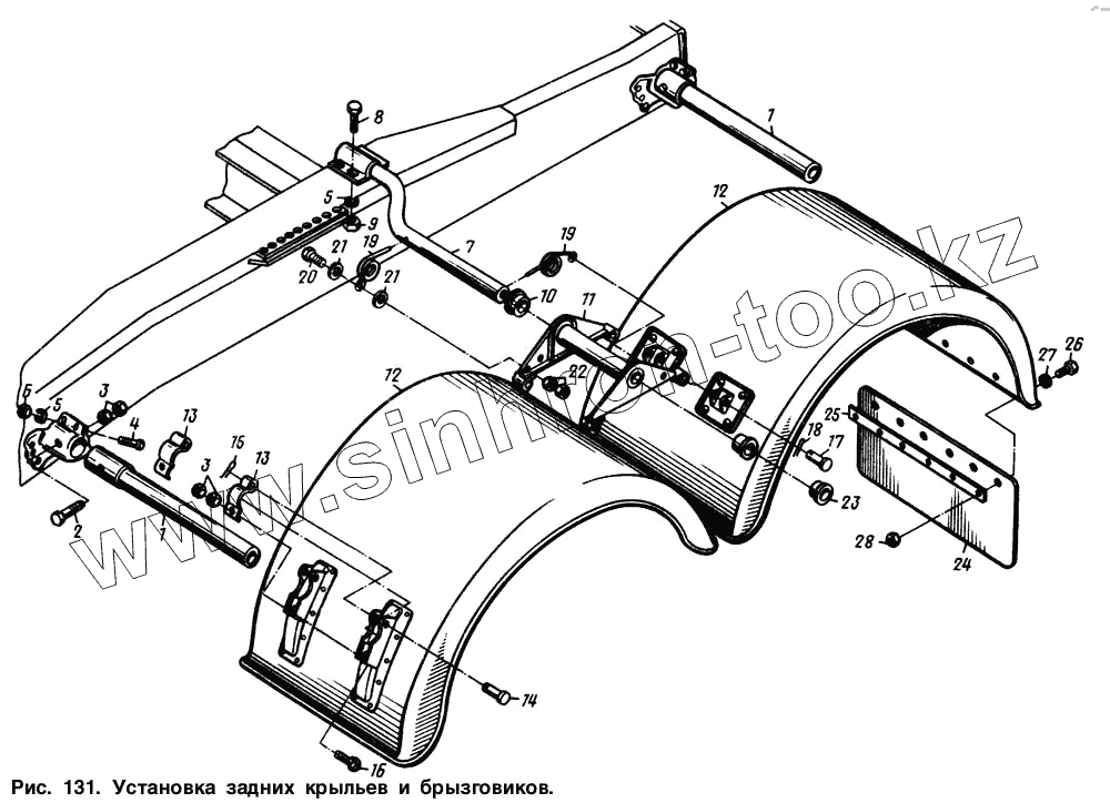 Каталог запасных частей к технике: МАЗ-64221. Установка задних крыльев и брызговиков