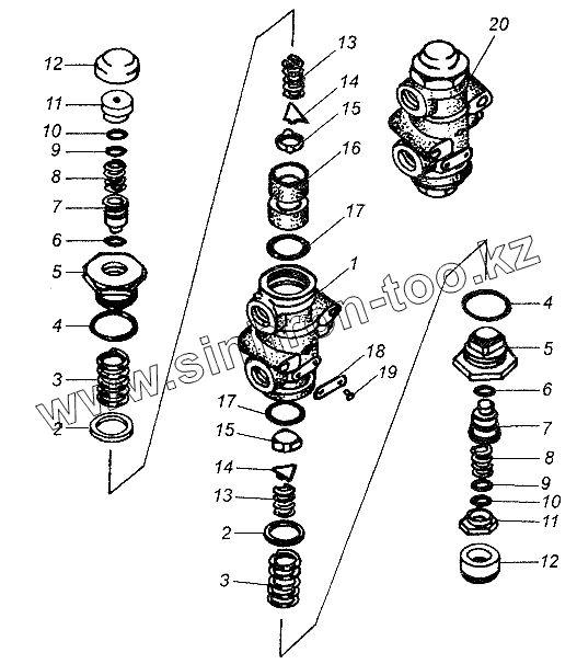 Каталог запасных частей к технике: МАЗ-64226. Клапан защитный двойной