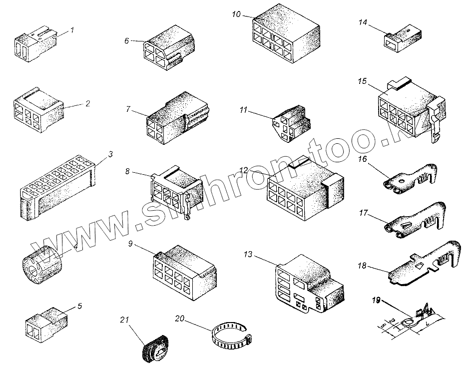 Каталог запасных частей к технике: МАЗ-64226. Колодки, контакты, наконечники