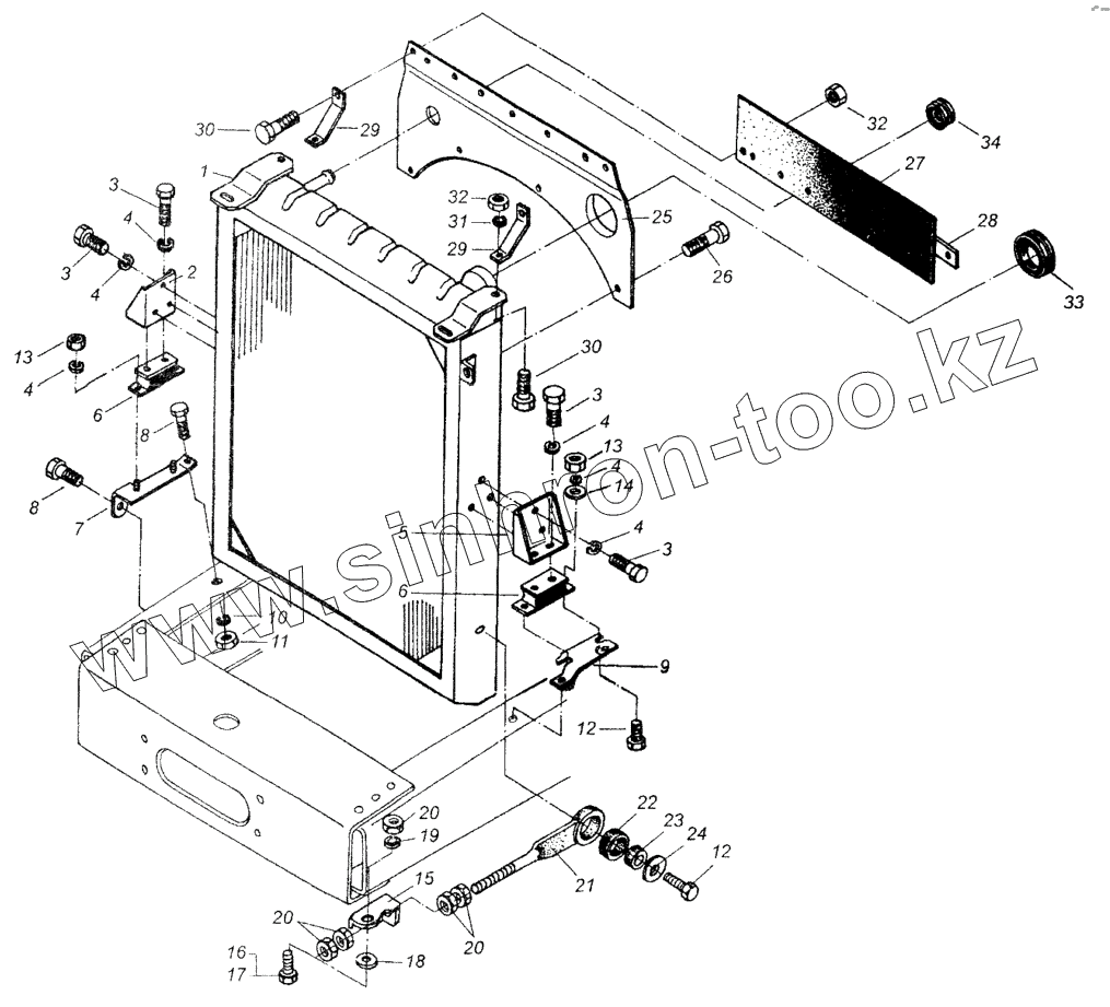 Каталог запасных частей к технике: МАЗ-64226. Крепление водяного радиатора