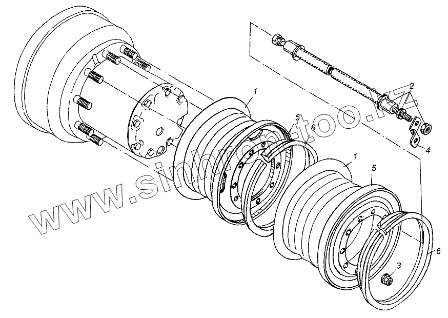 Каталог запасных частей к технике: МАЗ-64226. Крепление задних колес