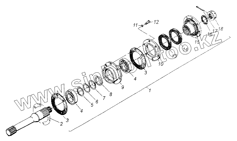 Каталог запасных частей к технике: МАЗ-64226. Мост средний. Вал задний