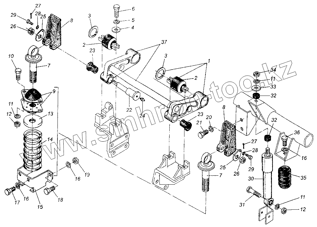 Каталог запасных частей к технике: МАЗ-64226. Переднее подрессоривание кабины