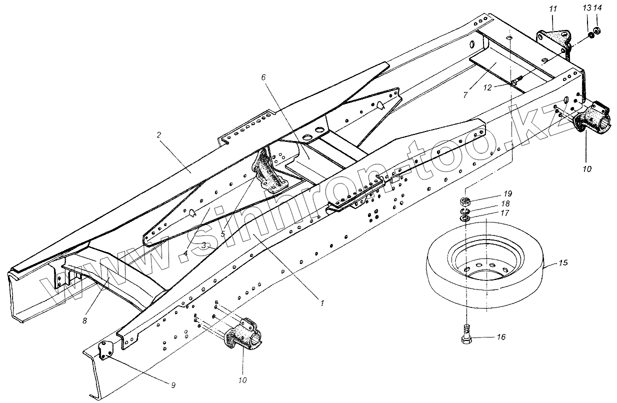Каталог запасных частей к технике: МАЗ-64226. Рама МАЗ-64226 Установка запасного колеса