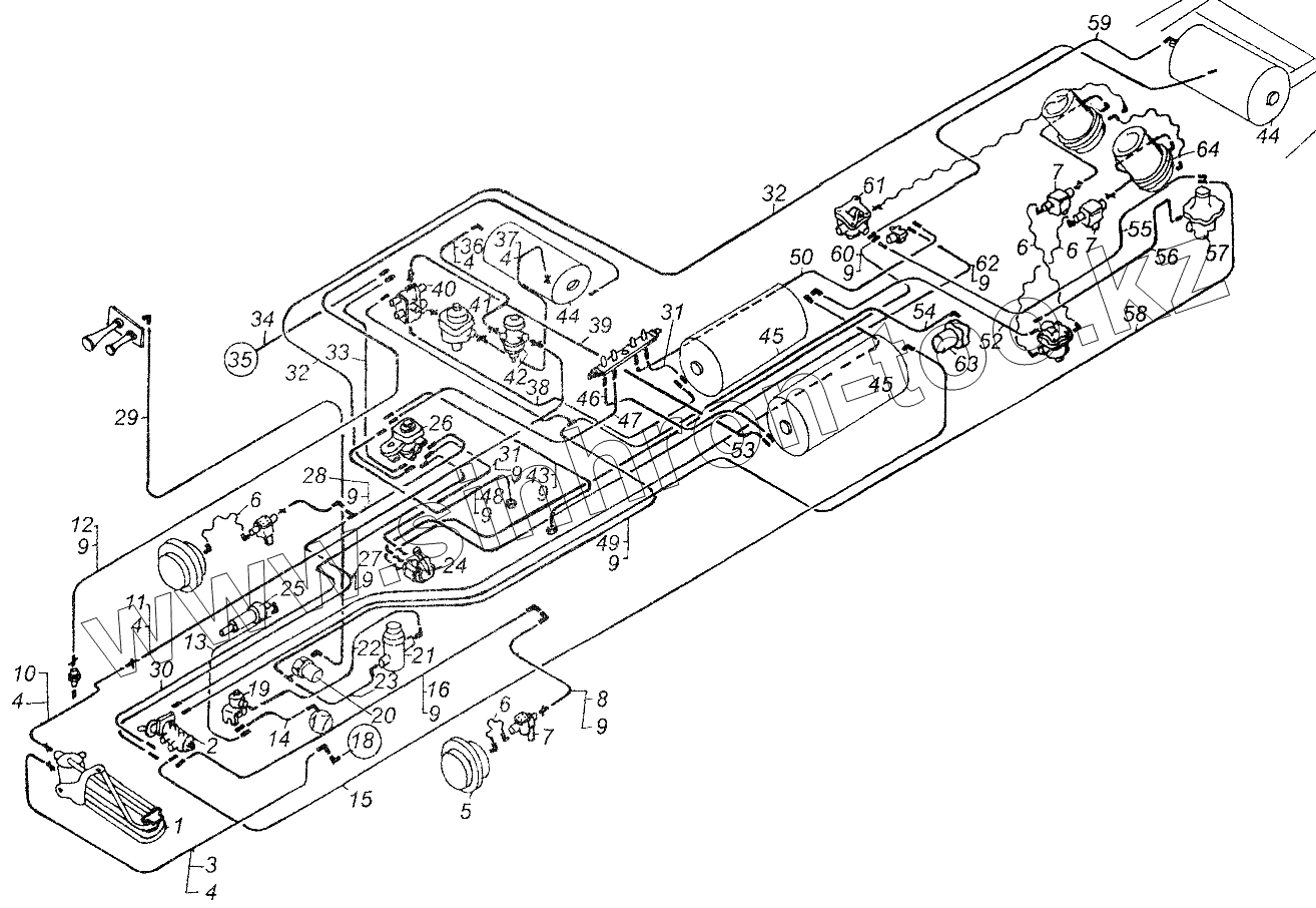 Каталог запасных частей к технике: МАЗ-64226. Схема тормозного привода автомобиля МАЗ-54326