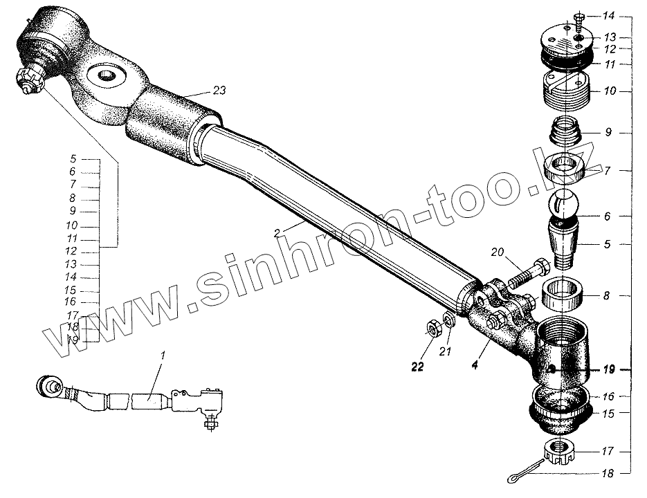 Каталог запасных частей к технике: МАЗ-64226. Тяга продольная рулевая