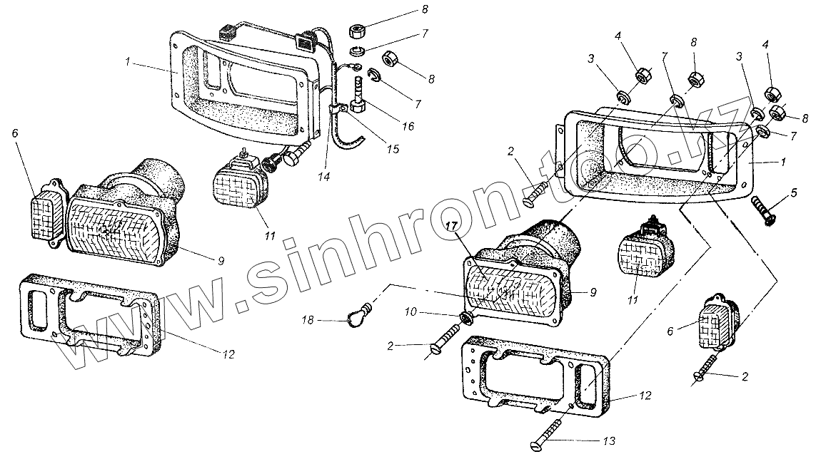 Каталог запасных частей к технике: МАЗ-64226. Установка фар