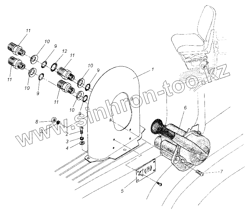 Каталог запасных частей к технике: МАЗ-64226. Установка крана тормозного с ручным управлением