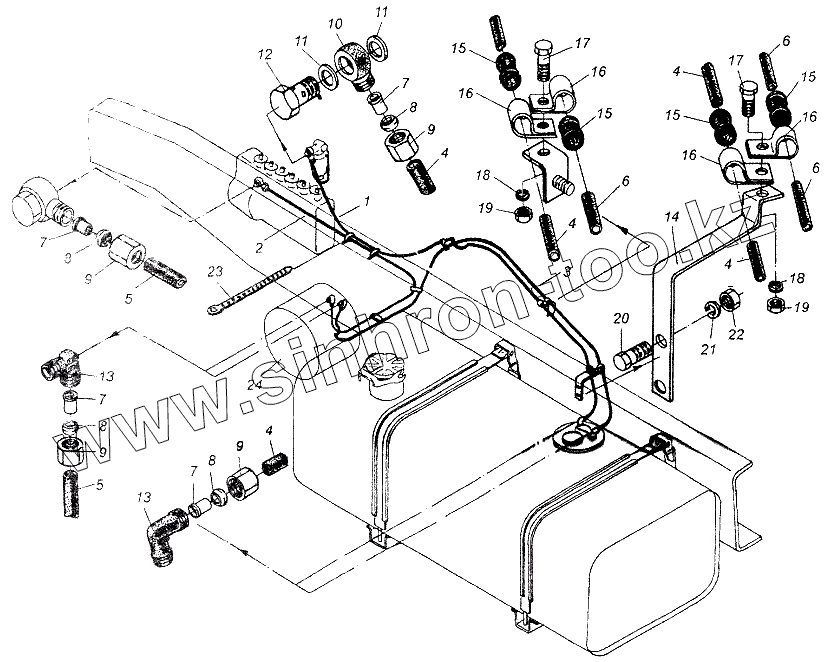 Каталог запасных частей к технике: МАЗ-64226. Установка топливопроводов с подогревом двигателя