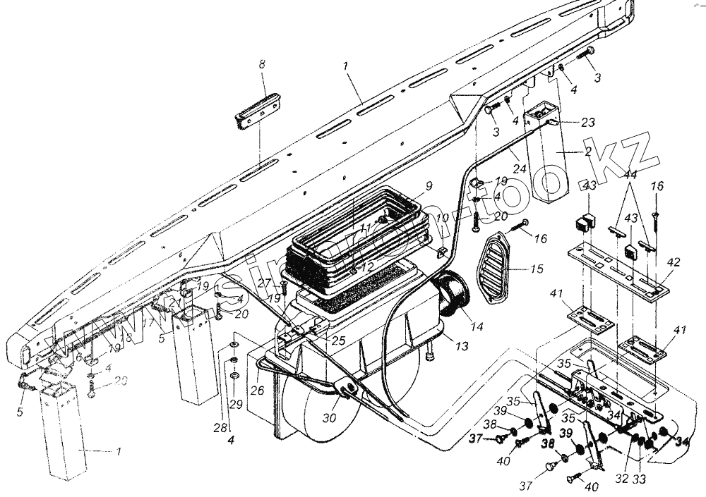Каталог запасных частей к технике: МАЗ-64226. Установка воздушных заслонок и отопителя кабины