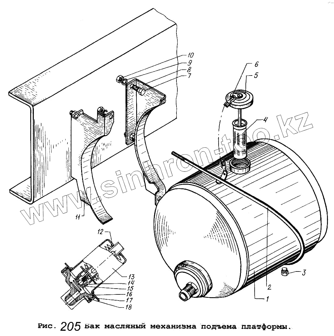 Каталог запасных частей к технике: МАЗ-64229. Бак масляный механизма подъема платформы
