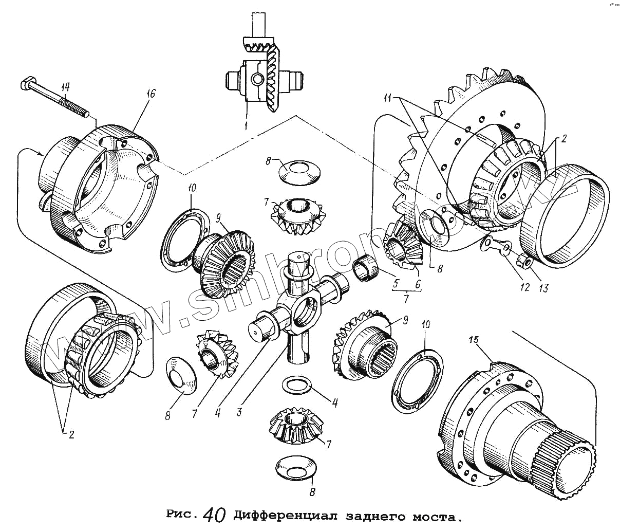 Каталог запасных частей к технике: МАЗ-64229. Дифференциал заднего моста
