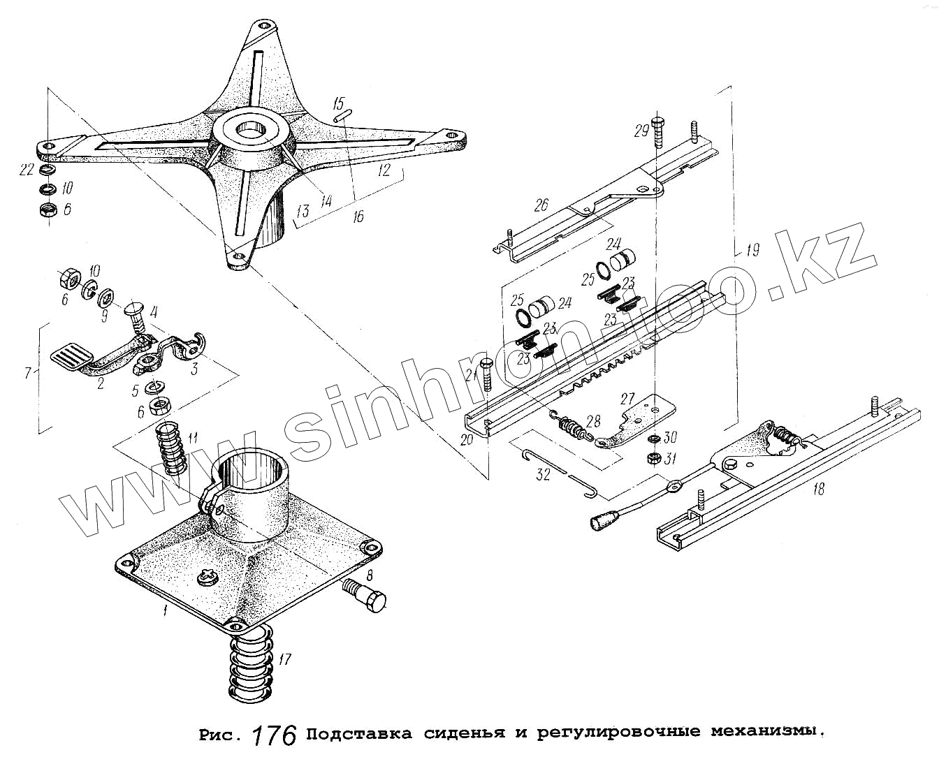 Каталог запасных частей к технике: МАЗ-64229. Подставка сиденья и регулировочные механизмы