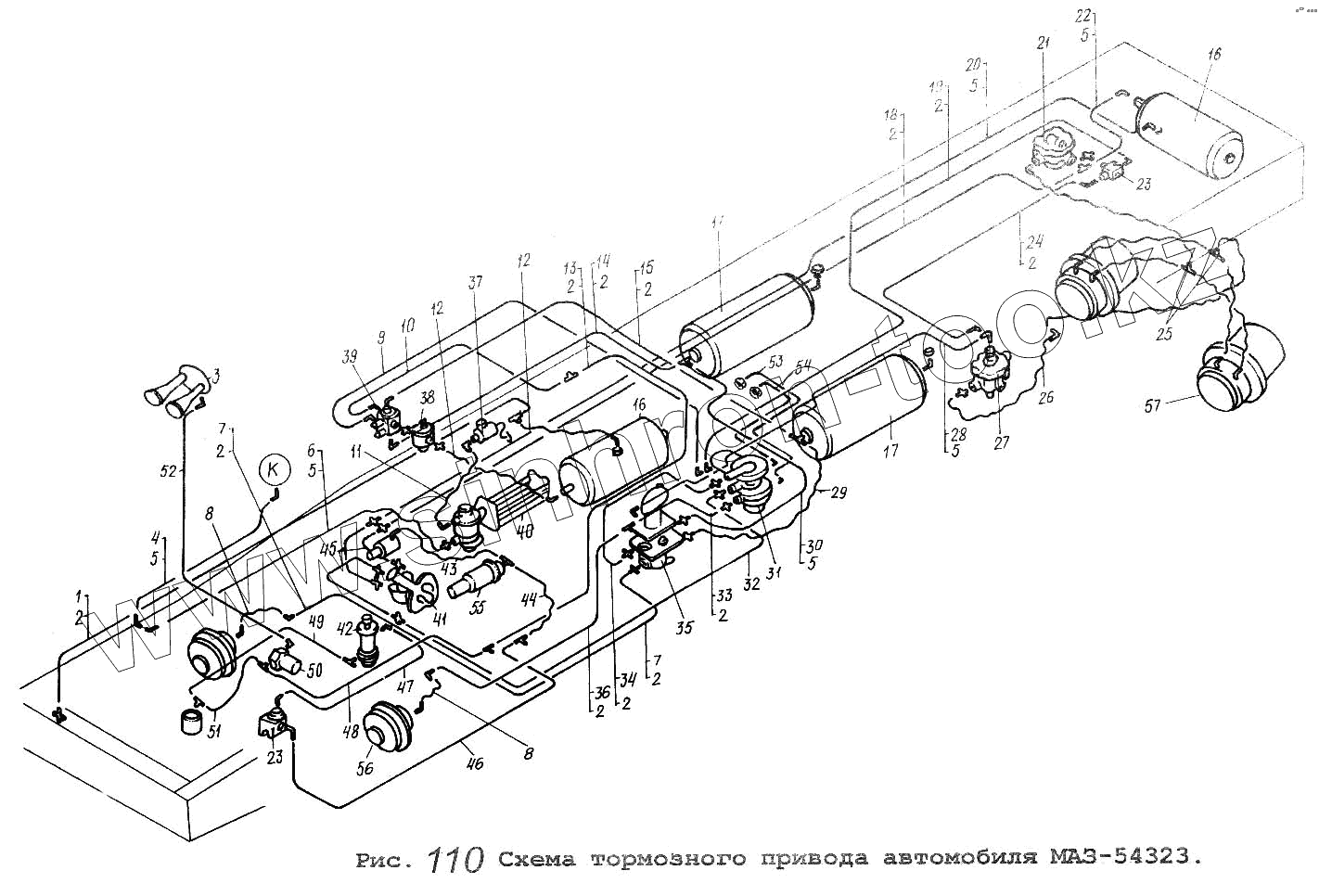 Каталог запасных частей к технике: МАЗ-64229. Схема тормозного привода автомобиля МАЗ-54323